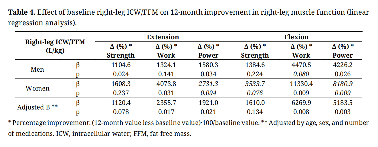 Table 4. Effect of baseline right-leg ICW/FFM on 12-month improvement in right-leg muscle function (linear regression analysis).