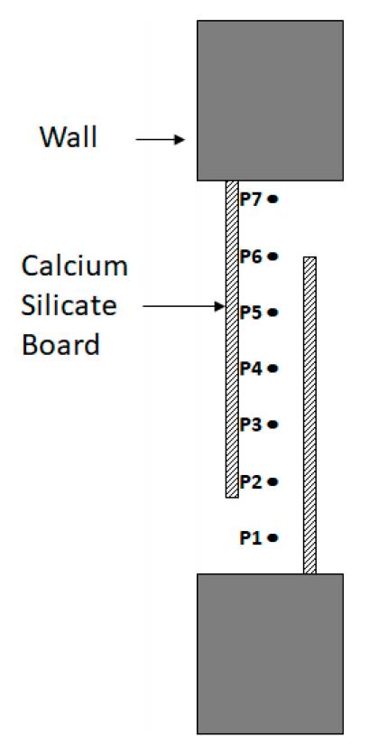 In order to understand the noise reduction mechanism of ventilation partitions and how the sound absorbers affect the sound radiation in the cavity between the two panels, the sound pressure levels (SPLs) at 7 measuring points, as depicted in Figure 3, along the diagonal line on the middle cross-section of the cavity were measured.