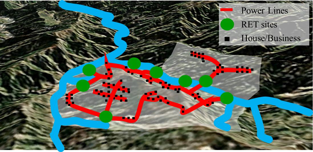 Figure 19. Interconnected pico-hydropower off-grid network concept, linking multiple pico-hydropower