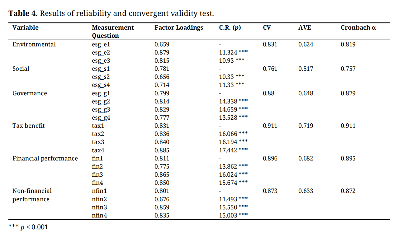 Table 4. Results of reliability and convergent validity test.