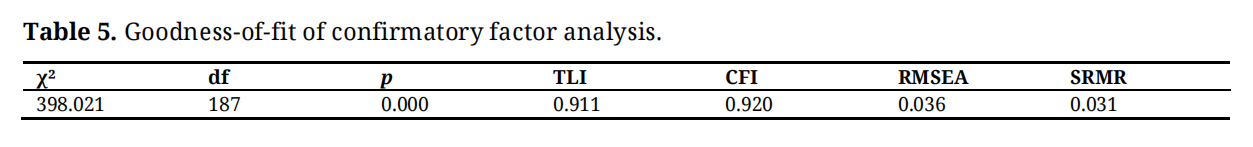 Table 5. Goodness-of-fit of confirmatory factor analysis.
