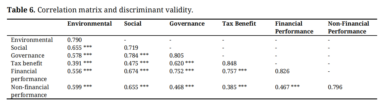 Table 6. Correlation matrix and discriminant validity.