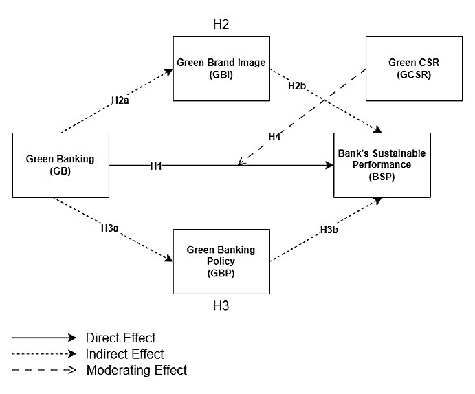 Also, a bank’s reputation, resource allocation, and stakeholder support for sustainability are all strengthened by a strong commitment to CSR, which may increase the beneficial effects of GB on BSP (Figure 1).
