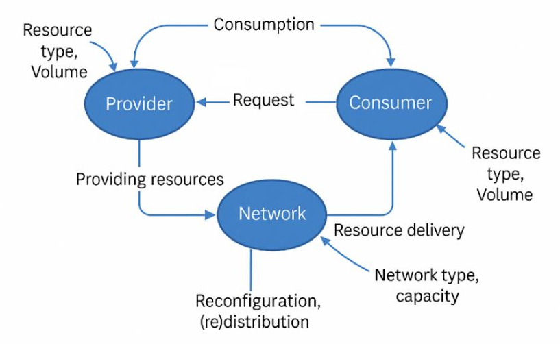 Urban services—mobility, energy, water, waste, health, safety, governance—function as the “species” of the ecosystem. Agents both provide and consume these services within a virtual market. As in natural ecosystems, each service consumes resources (data, capacity) and produces outputs (e.g., traffic optimization, energy balancing, emergency response).