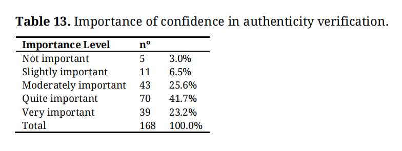 Additionally, respondents indicated the importance of trusting a wine that verifies its authenticity through a trusted system, with 41.7% considering it “quite important.” (Table 13).