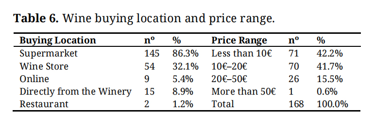The final version of the survey, made publicly available, received a total of 190 responses. After filtering incomplete responses and excluding individuals who did not purchase wine, a total of 168 valid responses were retained. Interestingly, three responses were from individuals who did not consume wine but had purchased bottles.
