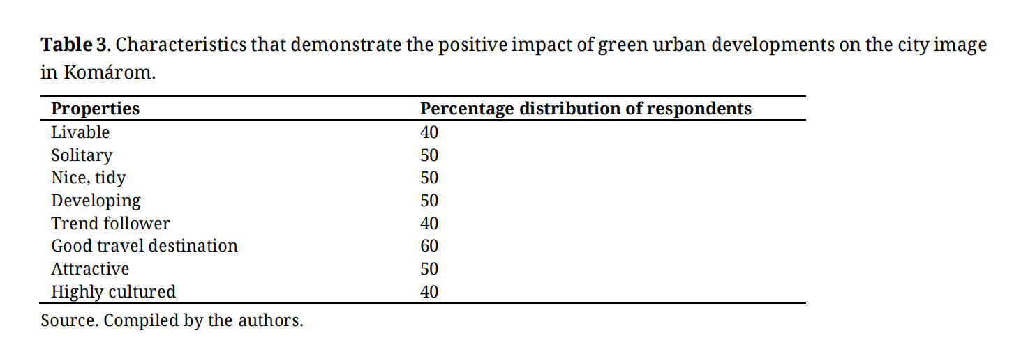 Table 3. Characteristics that demonstrate the positive impact of green urban developments on the city image in Komárom.