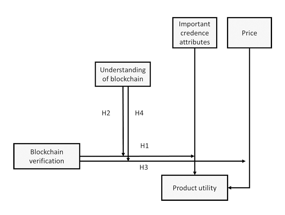 H2: The effect of a statement that product information has been blockchain verified on utility of important credence attributes will be stronger the better consumers understand the concept of blockchain.