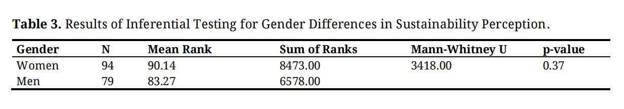 Finally, the inferential analysis found no statistically significant gender differences in consumer perception of sustainability within e-commerce.