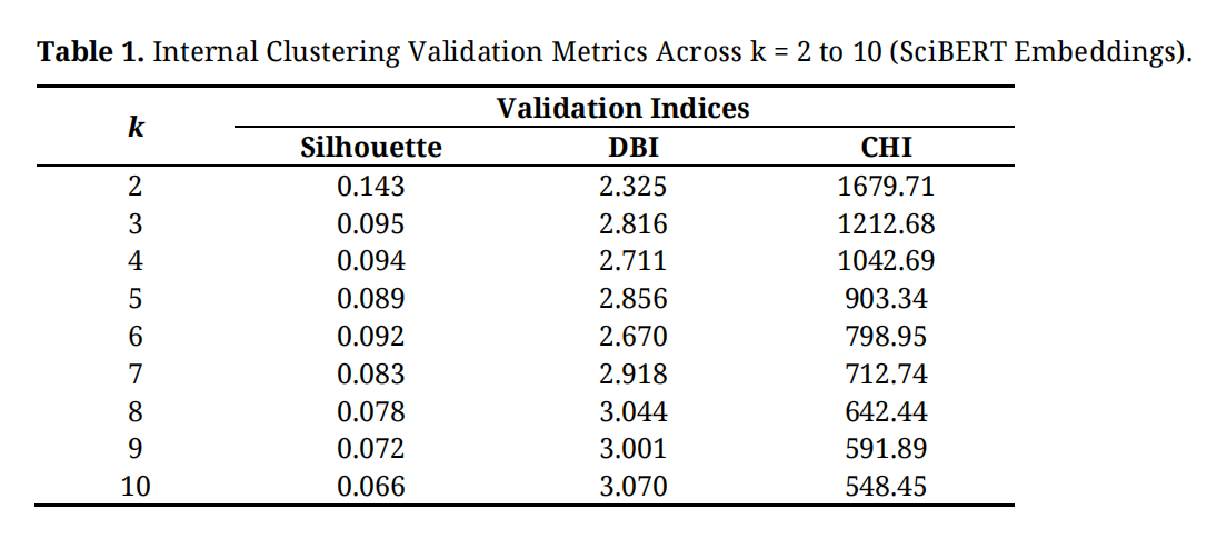 This procedure enables the grouping of patents based on semantic similarity in contextual embedding space rather than relying solely on predefined classification codes, thereby complementing DWPI-based categorisation. This semantic layer identifies of technology groupings driven by contextual similarity rather than formal classification codes, thereby capturing emergent innovation patterns.